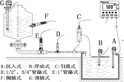 有些客戶,購買了成套的PH計,常規的安裝方式比如側壁、流通、管道等安裝方式幾乎不會有什么安裝麻煩,但有的客戶,需要將電極沉入池中,需要其配護套管,一般新的電極具有防水功能,但是使用時間一長,難免會發生電極線纜處發生泄漏,會導致儀表測量不準,甚至儀表配件損壞。廠家一般不提供適合其工況的電極護套,因為比較難以做到精確,池過深也不方便提供給客戶,在此就需要客戶根據自己的現場工況簡單進行電極護套管制作。一般現場的工業在線ph酸堿度計安裝方式主要有以下幾種:1. 側壁安裝;
