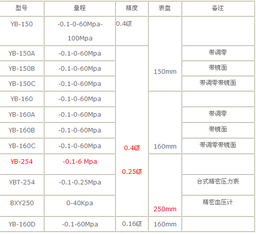 YB-254精密壓力表