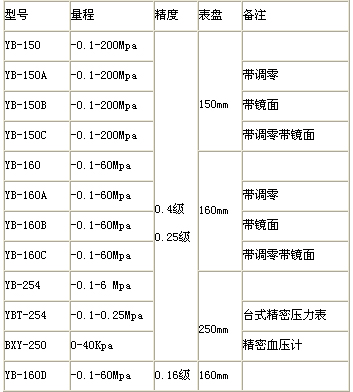 精密壓力表原稱標準壓力表,在我國也有多年的生產歷史,已有完整的系列和齊全的規格型號,執行國家標準GB-1227和檢定規程JJG-49。其結構簡單、性能穩定、指示直觀形象及其高性價比和完整的系列使之在石油、化工等行業,在生產和科學實驗等環節,在各級壓力量值傳遞和計量檢定部門有著相當廣泛的應用。