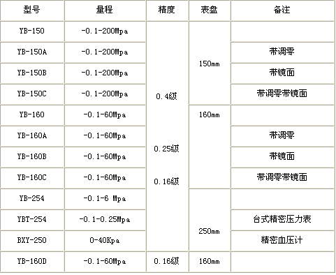溫馨提示: 西安云儀前身為西安精密儀器儀表廠,主要生產各類壓力表,壓力計量設備。全國只有西安云儀可以生產 160MPA  250MPA   300MPA 超高壓精密壓力表,也是全國唯一可以生產高精度精密壓力表的廠家(0.16級,0.1級) ,技術實力可見一斑,我公司鄭重承諾:凡在我公司購買的精密壓力表,檢定不合格我廠可以無條件退貨。精密壓力表屬于計量用高精度壓力表,其年精度損失是重要的考核因素之一,由于彈簧管本身的性質,在反復加壓40000次后會出現明顯的精度損失現象。我廠鄭重承諾在我廠選購的精密壓力表,我廠在質保期后可免費對返廠精密壓力表進行校驗。切實減輕生產單位和計量單位的負擔。